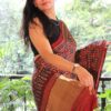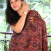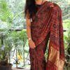 Ajrakh handblock printed Maroon Modal Silk Saree with tissue pallu